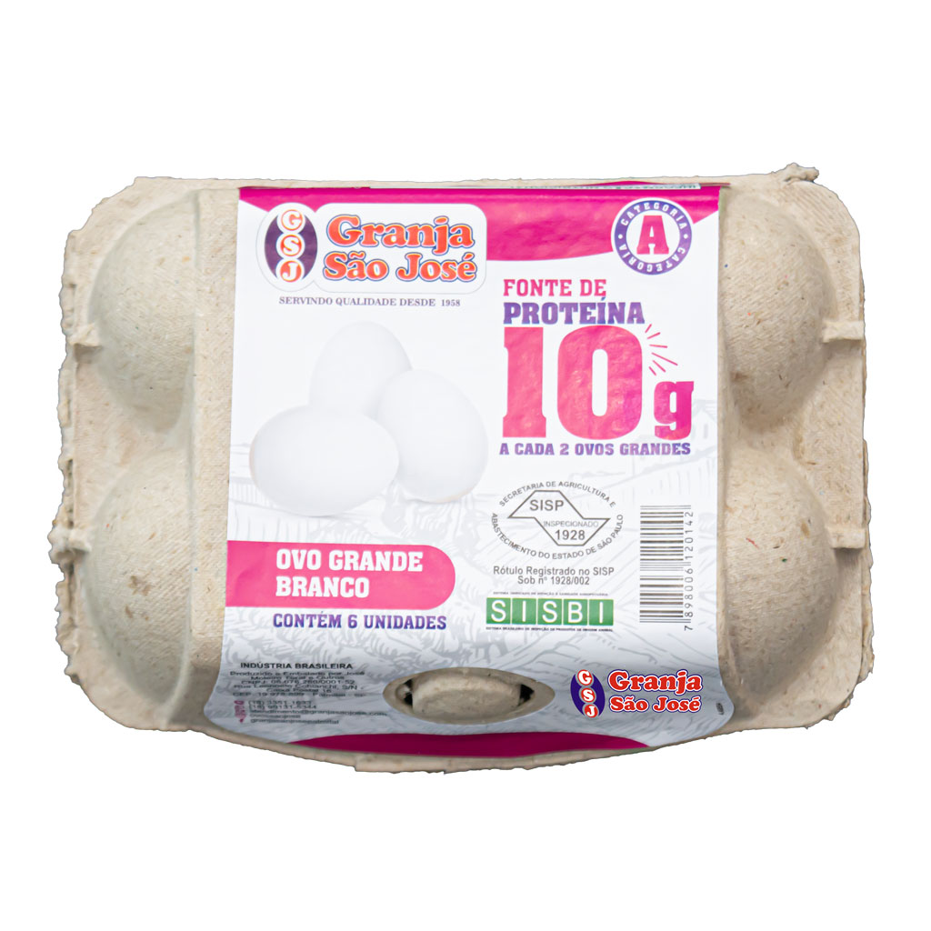 • Ovo Grande Branco 6 unidades - 10g de proteína a cada 2 ovos