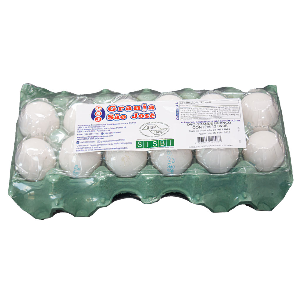 Ovo Grande Branco 12 unidades – 10g de proteína a cada 2 ovos